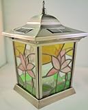 Homebrite 30112, Illuminate your outdoor path and living space with this durable metal solar powered lantern that recharges in sun or shade. The solar lantern has hand blown stained glass. It comes with SUPER White LED lights, an adjustable hook or it can be used alone on a table. Also includes bolts and anchors for wall or column mounting. With no wires, it's so easy to install. Smart ON/OFF day & night technology turns on the landscape lights at night and charge the rechargeable battery during the day. (Read More)