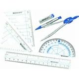 - Geometry Math Kit containing 6 pieces: Compass, lead refills, 6 inch ruler, 180 protractor, 45-90-45 degree triangle and 30-60-90 degree triangle.